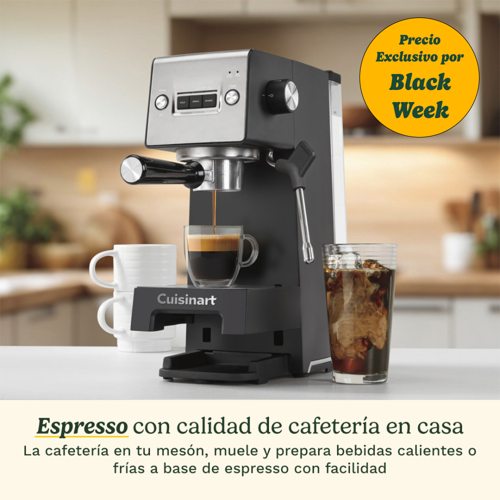 Descubre el arte del espresso en casa con la Cuisinart® Espresso Bar™: prepara bebidas frías o calientes, personaliza tu café con espuma cremosa y disfruta de la comodidad de llevarlo en tu taza de viaje. ¡Conviértete en tu propio barista y vive una experiencia única en cada sorbo!